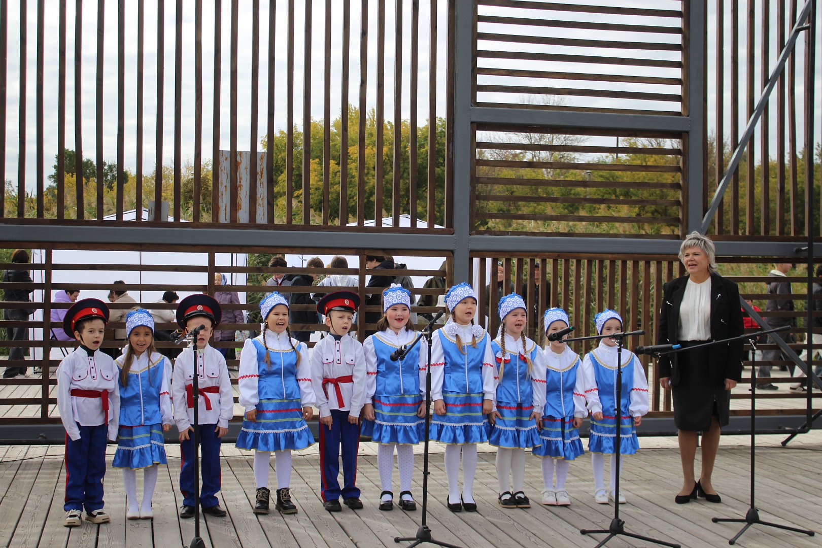В Козьем парке в это время проходил фестиваль патриотической песни "С любовью к Родине". В нем участвовали образовательные учреждения, учащиеся Детской школы искусств, а также коллективы районного Дворца культуры. Здесь же развернулась выставка-продажа, организованная "серебряными волонтерами", и прошел мастер-класс "Брошь Гвоздика" от мастерицы Натальи Балыбиной. Во время мероприятия в праздничной атмосфере первый заместитель главы администрации КМР Максим Владимирович Норов вручил паспорта юным гражданам, достигшим 14-летнего возраста.