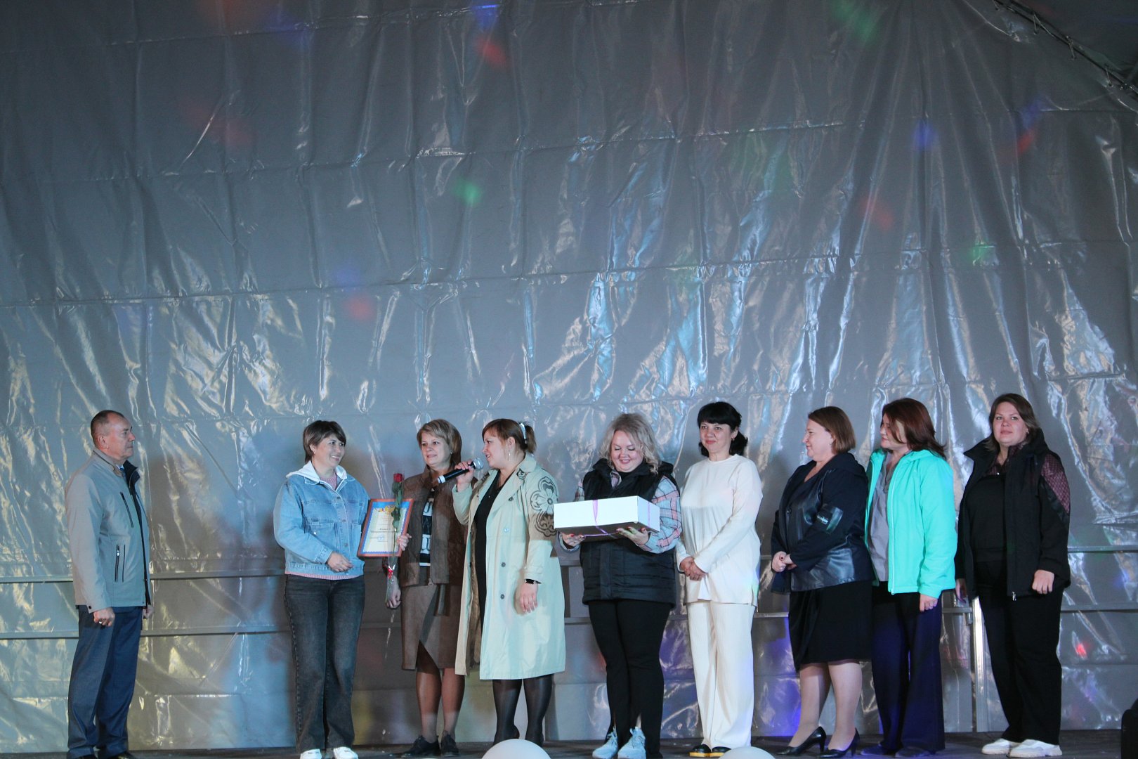 Праздничный вечер продолжился яркой концертной программой, которую подарили коллективы художественной самодеятельности РДК, а финальной точкой праздника стало захватывающее пиротехническое шоу, вызвав восторженные эмоции у жителей города.