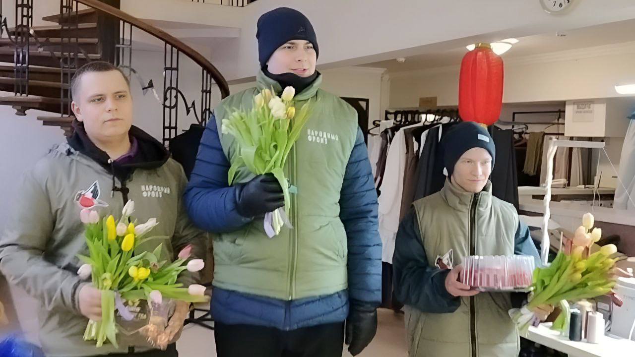 Активисты Молодёжки Народного фронта поблагодарили женщин за их труд, самоотверженность и поддержку военнослужащих. Для волонтёров подготовили небольшие праздничные подарки — цветы, торты и чай.