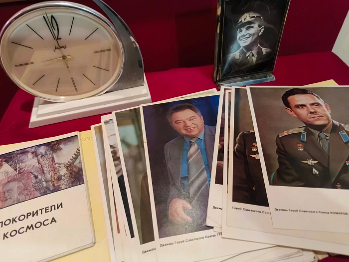 Особое место в экспозиции занимают материалы, связанные с жизнью и подвигом Юрия Алексеевича Гагарина. Фотографии рассказывают о важнейших этапах жизни первого космонавта, а часы "Молния" с гравировкой: дата "12.04.1961" и название космического корабля "Восток-1" станут немым свидетелем того исторического дня. Среди экспонатов вы также найдете небольшой портрет Юрия Алексеевича Гагарина, подаренный музею местной жительницей Л.И. Шаткиной, день рождения которой совпадает с днем рождения первого космонавта.