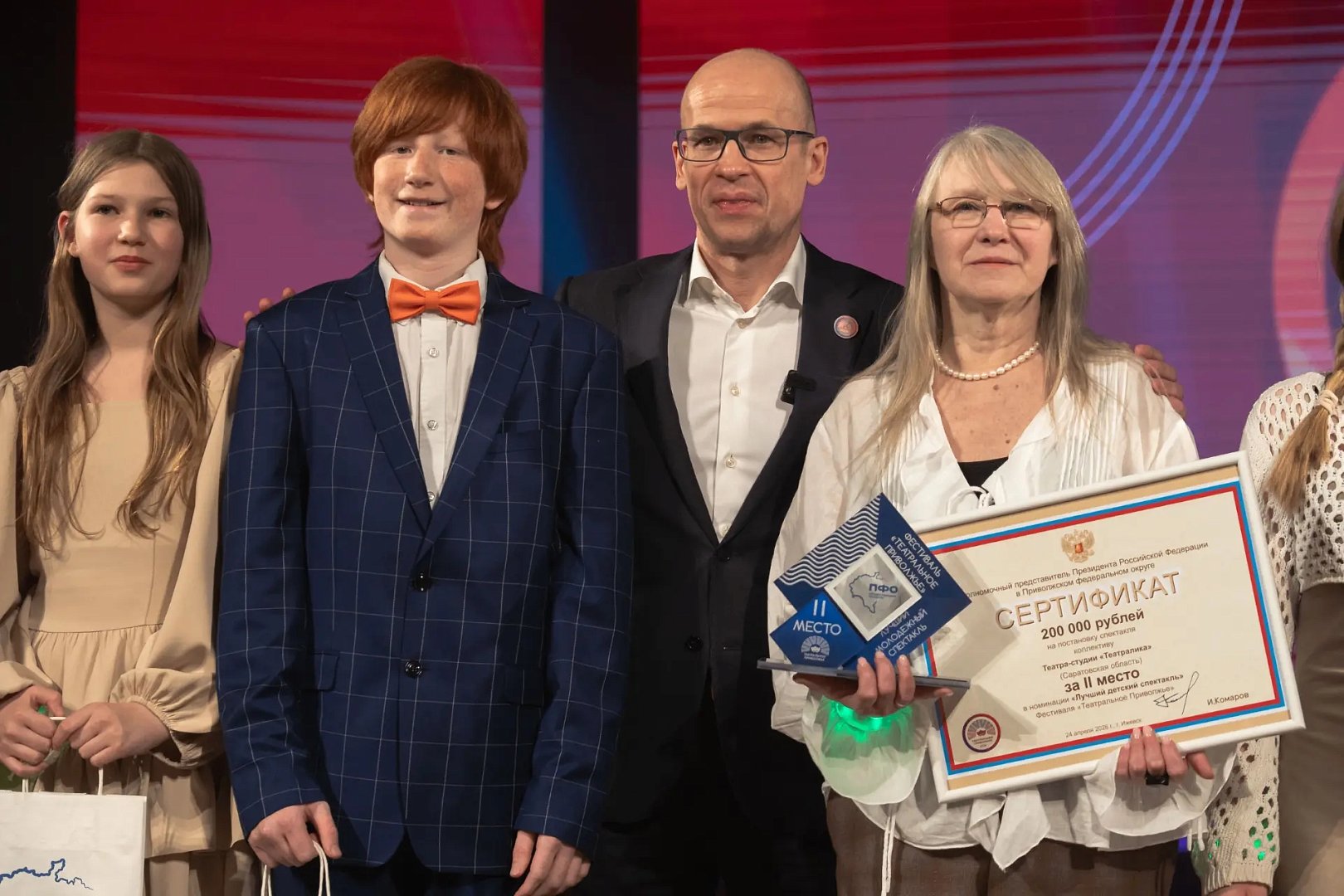 24 апреля 2026 года в Ижевске в Государственном национальном театре Удмуртской Республики состоялась торжественная церемония награждения победителей VII окружного Фестиваля детских и молодежных театральных коллективов "Театральное Приволжье". В мероприятии принял участие заместитель полномочного представителя Президента России в ПФО Олег Машковцев.Победителей определили в номинациях "Лучший детский спектакль", "Лучший молодежный спектакль", "Лучшая режиссерская работа", "Лучшая мужская роль", "Лучшая женская роль", "Лучшее художественное оформление" и "Лучшее музыкальное оформление". Отдельно наградили лауреатов конкурса афиш и плакатов.